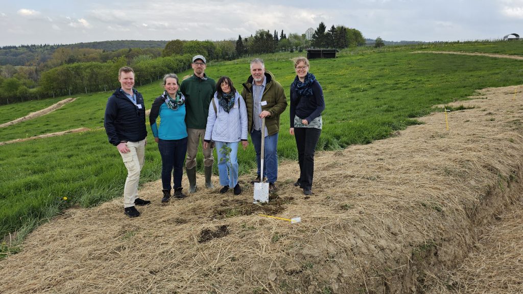 Das zukunftsweisende Konzept des Agroforstes wurde bereits im letzten Jahr mithilfe von LEADER-Fördermitteln entwickelt. Nun folgt die Umsetzung. „Mit dem Projekt soll aufgezeigt werden, wie durch naturnahe Maßnahmen der Wasserrückhalt im Boden gesteigert, die Resilienz der Landschaft gegenüber Extremwetter erhöht und Dauergrünland ökologisch nachhaltig aufgewertet werden kann.“ erläutern Rike und Steffen Schedler, Projektträger und Inhabende des Hofes Grünsnück. „Dieses Wissen wollen wir zukünftig auch durch Infotafeln, Workshops und Führungen für alle zugänglich und erlebbar machen“.