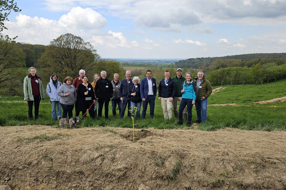 Mit dem ersten Spatenstich startete am 21.04.2026 offiziell das LEADER-Projekt „Realisierung eines klimawandel-resilienten Agroforstes“. Die Queckenberg GbR (Familie Schedler, Hof Grünsnück) will mit dem Projekt auf knapp 3 Hektar Grünland einen nachhaltigen Lebensraum schaffen, der ökologische, ökonomische und soziale Bedürfnisse der Region vereint.